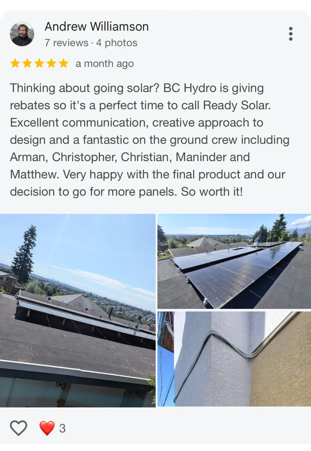 ✅You can get up to $10,000 in rebates through BC Hydro by going solar.